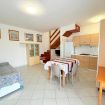 Questa accogliente e luminosa villetta trilocale è composta come segue: al piano terra ampio soggiorno con angolo cottura (fornello a gas, frigorifero con congelatore) e divano letto per due persone; il piano superiore è stato ristrutturato inizio 2025 e consiste in camera con letto matrimoniale, camera con due letti singoli e un bagno con ampia doccia, Wc e bidet.