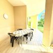 L' appartamento si trova al piano terra ed è composto da un soggiorno con un divano letto per due persone, angolo cottura (fornello, frigorifero, congelatore e lavatrice), camera da letto con letto matrimoniale, camera con letto a castello, bagno con doccia, wc e bidet. All'esterno c'è un ampio giardino ad angolo e una terrazza con zona ristoro.