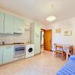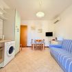 L'appartamento si trova al piano terra ed è composto da un soggiorno con angolo cottura (fornello, frigorifero, congelatore e lavatrice) e un divano letto per due persone, camera con letto matrimoniale, camera con due letti singoli, bagno con doccia e una terrazza coperta con barbecue.