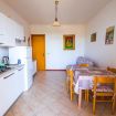 L'appartamento si trova al primo piano ed è composto da un soggiorno con angolo cottura (fornello, frigorifero, congelatore e lavatrice) e un divano letto per due persone, camera matrimoniale, bagno con doccia e una terrazza coperta con barbecue.