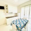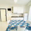 Il monolocale è composto internamente da soggiorno con angolo cottura, divano letto matrimoniale e letto castello e balcone con mobili da giardino per pranzare all' aperto, bagno con doccia, wc e bidet, lavatrice.