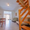 Al piano terra si trova un ampio soggiorno con divano letto matrimoniale e angolo cottura (fornello, frigorifero con congelatore e lavatrice), una camera da letto con due letti singoli e bagno con doccia / WC e bidet,