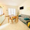 Internamente è composta da: soggiorno con cucina a vista e divano letto per 2 persone, bagno completo con ampio box doccia e servizi, camera da letto matrimoniale e cameretta con letto a castello. Da questa cameretta si accede ad un piccolo giardino retrostante.