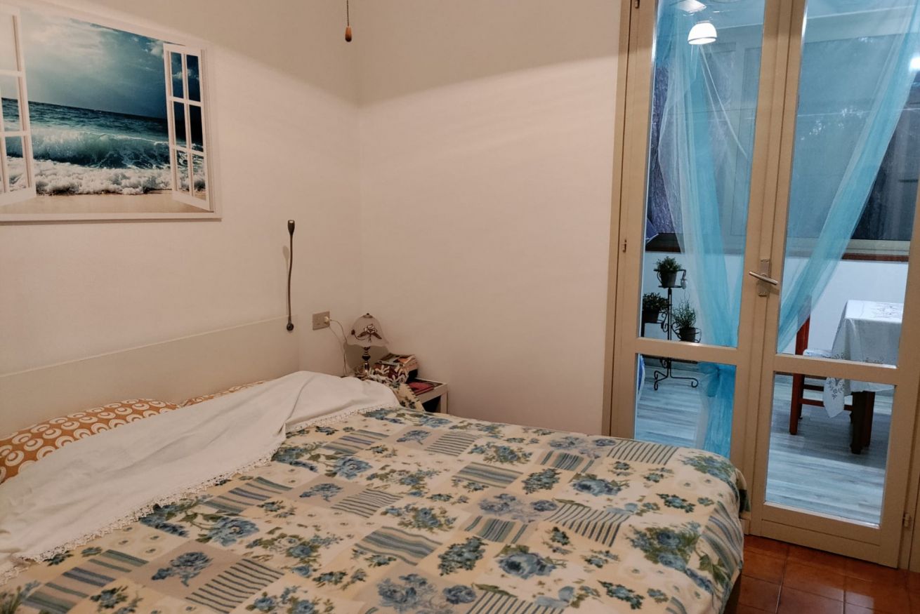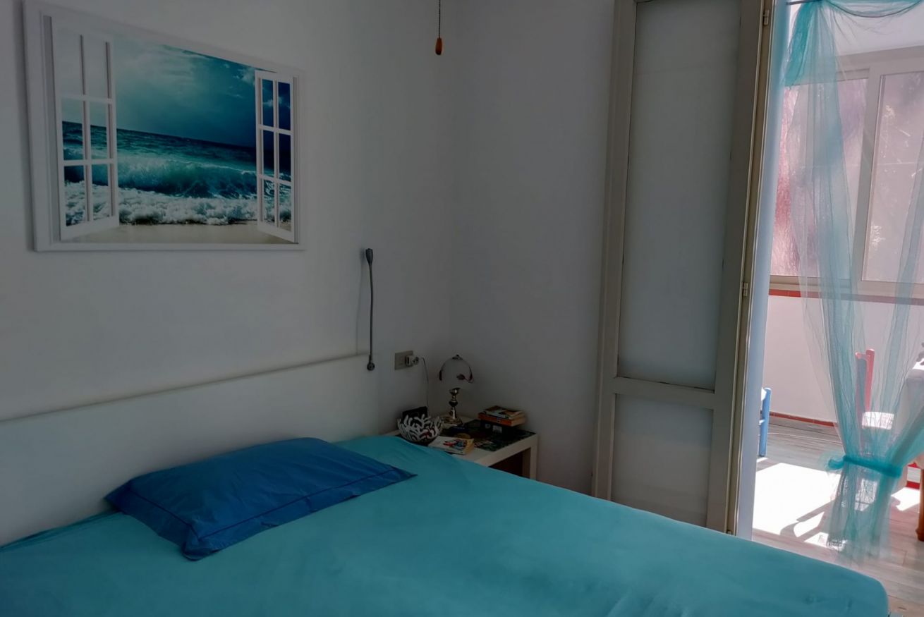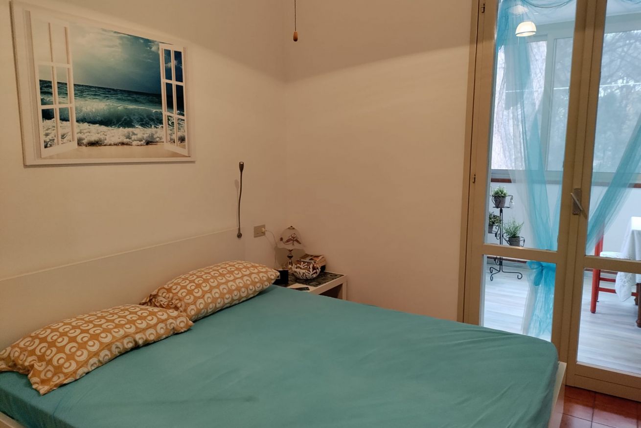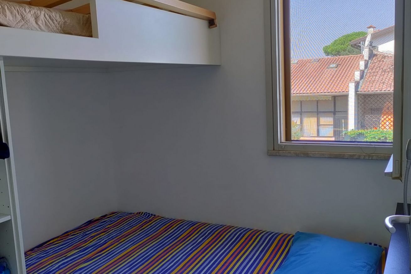 Internamente è composta da soggiorno con angolo cottura attrezzato (piano a induzione, microonde, forno e frigorifero), veranda finestrata, camera matrimoniale, cameretta con due letti singoli di cui uno soppalcato, e bagno completo con doccia e servizi. L’immobile è dotato di zanzariere.