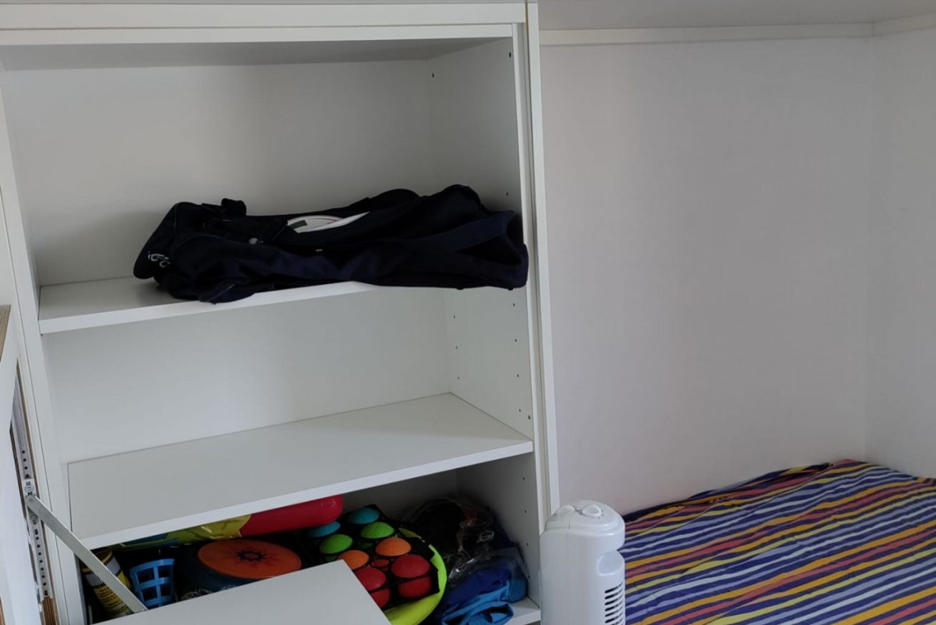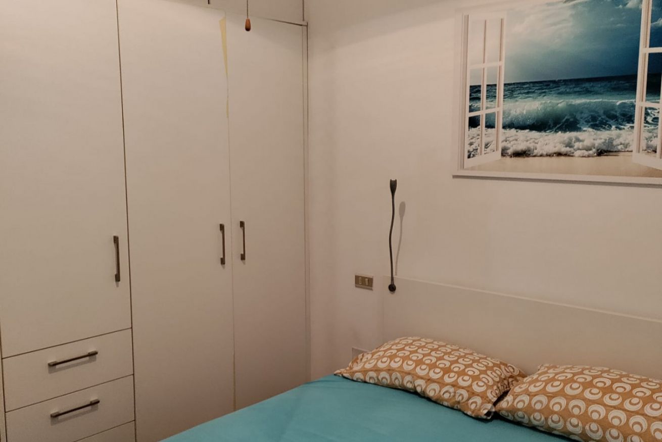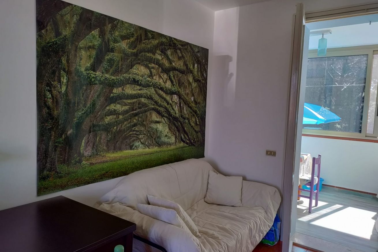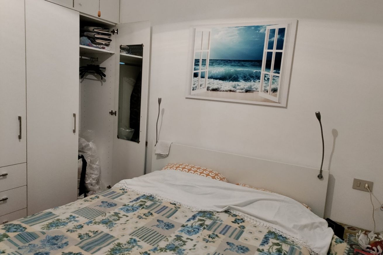 Internamente è composta da soggiorno con angolo cottura attrezzato (piano a induzione, microonde, forno e frigorifero), veranda finestrata, camera matrimoniale, cameretta con due letti singoli di cui uno soppalcato, e bagno completo con doccia e servizi. L’immobile è dotato di zanzariere.